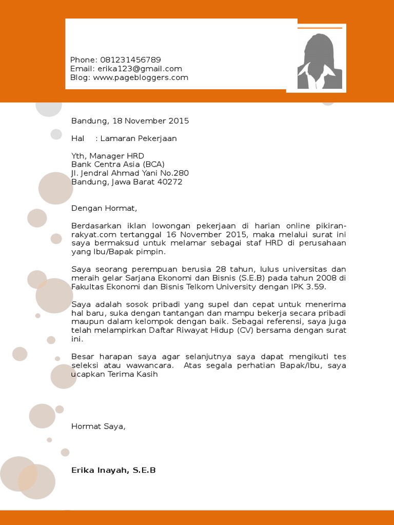 Contoh surat lamaran kerja terbaik, lengkap beserta tips dan trik rahasia pembuatan surat lamaran kerja sehingga mudah mendapatkan pekerjaan. Surat lamaran atau cover letter adalah sebuah surat pengantar untuk melamar pekerjaan yang berisi narasi pendek tentang deskripsi diri anda dan karya anda. Dengan melihat kop surat saja, maka kita sudah langsung. Penghasilan berupa uang bisa didapatkan dengan cara bekerja dan berbisnis. Selain itu, didalam surat lamaran kerja juga tidak memerluan kop surat atau kepala surat dan juga nomor surat. 12 contoh surat lamaran kerja di perusahaan. Surat lamaran merupakan surat permohonan yang dibuat oleh para pelamar pekerjaan atau pencari kerja, kemudian dikirimkan terhadap suatu badan usaha maupun instansi untuk mendapat pekerjaan. Contoh surat lamaran kerja lengkap & terbaru 2019 yang baik dan benar / eyd, umum, tulisan tangan, guru, rumah sakit, perusahaan, tulis tangan, pt, pabrik. Format penulisan surat lamaran kerja, beberapa tips dan contoh surat lamaran kerja secara umum yang baik sebelum ke pembahasan utama mengenai contoh surat lamaran kerja, sebaiknya kita. Contoh surat lamaran cpns ini kami tulis sebagai bahan rujukan bagi kamu yang sedang mempersiapkan diri meski baru calon, contoh surat lamaran cpns ini tidak bisa dianggap remeh. Lebih parahnya lagi, ketika mengirimkan email lamaran juga sangat tidak sesuai dengan standard profesional. Kop surat ini bukan hanya berguna sebagai pendahuluan surat saja, namun juga berguna untuk menunjukkan identitas surat tersebut. Hal ini agar surat lamaran kerja anda dilirik oleh pihak perusahaan.