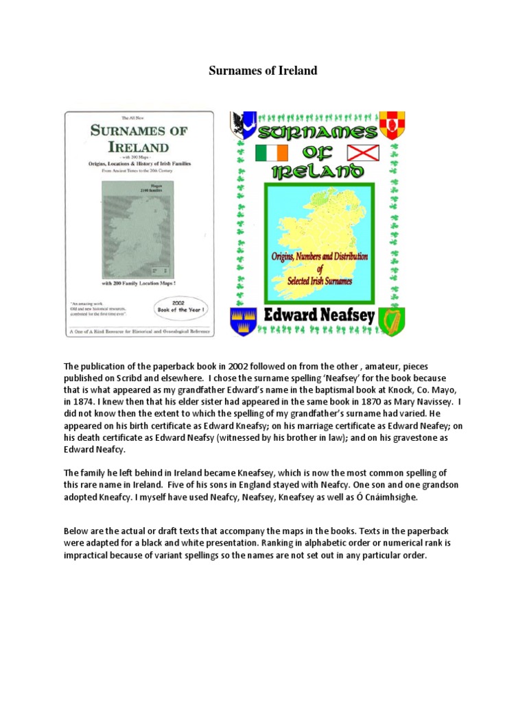 The top 20 most common surnames in dublin. *lee matches names which end with the sound lee _ is a wildcard that will match exactly one letter in the pronunciation Again they can refer to a person's church (and most often do) or some characteristic of the church or its location. In his special report on surnames in ireland , matheson estimated the total number of people living on the island bearing the 100 most numerous names, and he indicated the counties and. Many people think that they can identify an irish last name simply by an o' or a mc at the start of it.